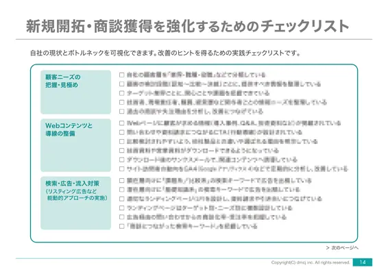 - 新規開拓・商談獲得を強化するためのチェックリスト
