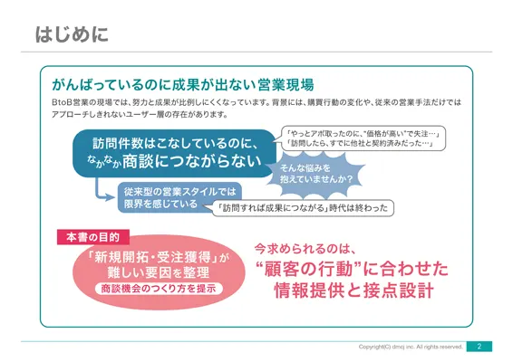 本資料では、商談を逃さないための「課題整理」と「実践的なアプローチ」を解説。